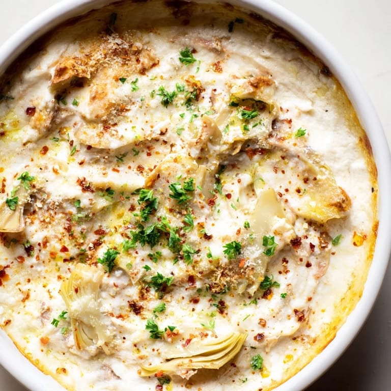 Save It A warm, creamy dip featuring tender artichoke hearts, rich cream cheese, and savory seasonings—perfect for parties or cozy gatherings.