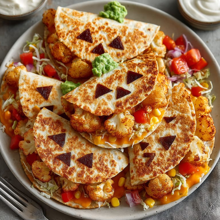 Save It These cauliflower jack o lantern quesadilla wraps are always the star of any Halloween gathering with their spiced vegetable filling and playful pumpkin faces. They make weeknight dinners memorable and are a fun way to enjoy Tex Mex flavors with seasonal flair that everybody can enjoy together.