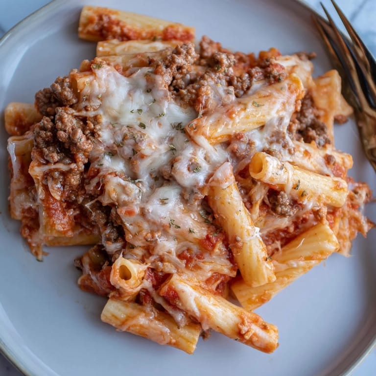 Save It A hearty, comforting casserole featuring tender penne pasta, savory ground beef, rich tomato sauce, and a golden, bubbling cheese topping—perfect for family dinners or potlucks.