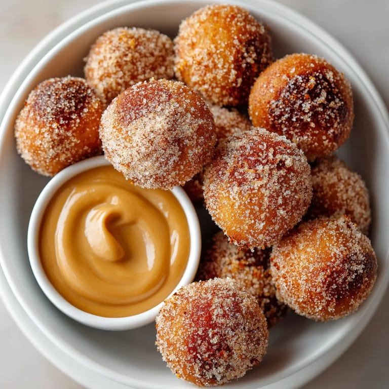 Save It These cinnamon sugar donut holes with creamy peanut butter dip are the ultimate treat when you need something special but quick. The donut holes turn out golden and pillow-soft, with a cozy cinnamon sugar coating, and they are made for dunking into a lush peanut butter dip. They never last long at parties, and I always find myself frying another batch because everyone just keeps coming back for seconds.