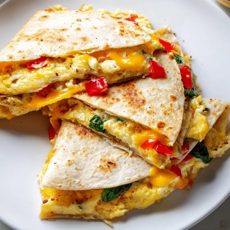 Serve this warm with a small bowl of salsa, sour cream, or guacamole on the side for dipping. The contrast between the hot, crispy quesadilla and cool, tangy toppings is part of why this feels restaurant-quality despite taking less time than brewing a second cup of coffee. It's hearty enough to carry you through a busy morning but light enough that you won't feel sluggish by mid-morning.