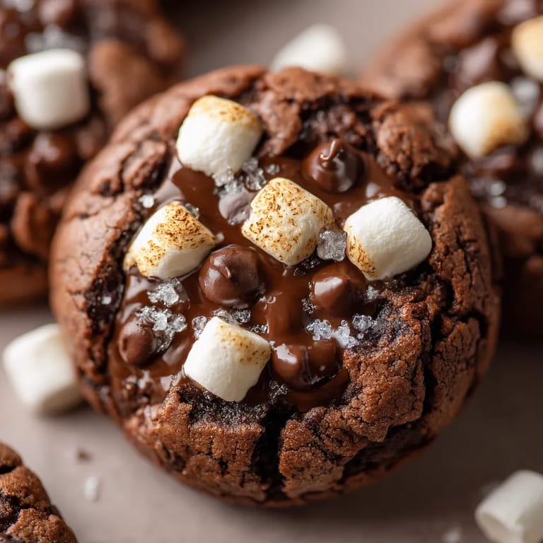 Delight in rich, chunky cookies featuring a hidden pocket of silky dark chocolate ganache and gooey marshmallows at the center. Each bite combines crisp edges with a molten, chocolatey interior, making these treats ideal for warming up on winter nights. After baking, the cookies emerge with crackly tops and a soft, fudgy core bursting with melted marshmallow and rich chocolate. For a festive touch, top with extra marshmallows or chocolate chips. Serve warm for an irresistibly gooey experience, paired perfectly with a glass of cold milk or coffee.