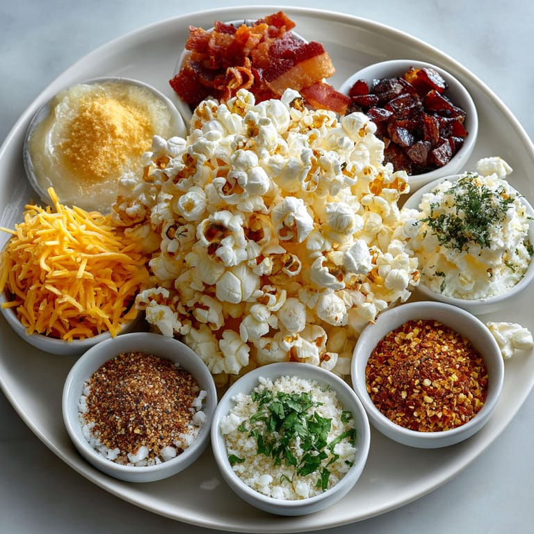 Invite guests to enjoy freshly popped corn with an array of global-inspired seasonings and toppings. This interactive popcorn flavor bar features a variety of choices, from classic cheddar and Italian herbs to vibrant Mexican street corn, Indian masala, Japanese umami blends, and sweet cinnamon sugar. Each bowl can be tailored to individual tastes, making it a hit at parties, events, or cozy movie nights. Simple to prepare and endlessly customizable for dietary needs, this setup brings flavors from around the world straight to your snack table.