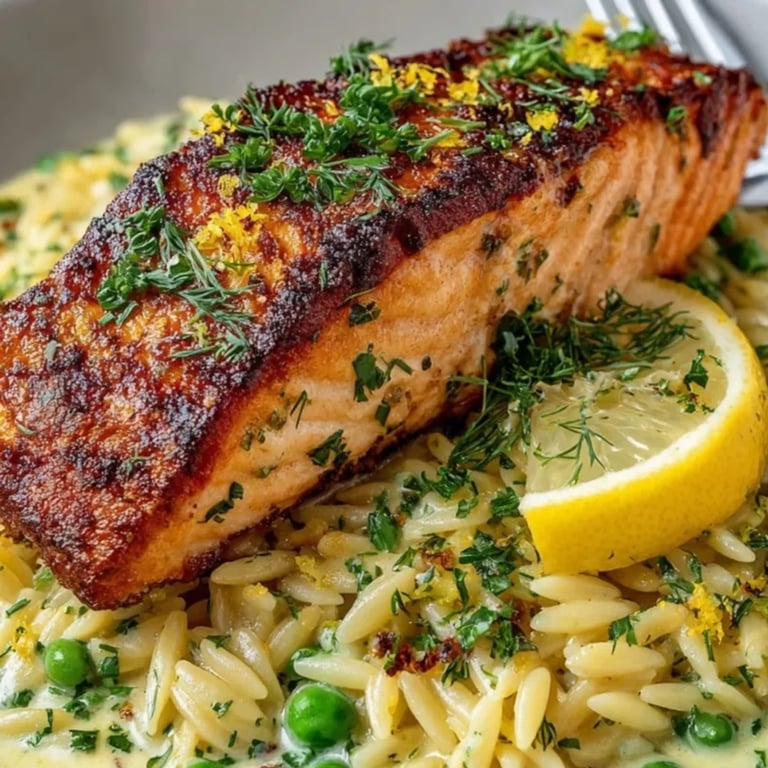 Save It This bright and satisfying Lemon Dill Orzo with Salmon comes together in barely over half an hour and offers the ultimate blend of weeknight ease and Mediterranean flavors. Flaky roasted salmon meets creamy lemon-dill orzo tossed with pops of sweet peas—every bite feels like a little dinner escape. It is my go-to when I want something nourishing and fresh that feels special but never fussy.