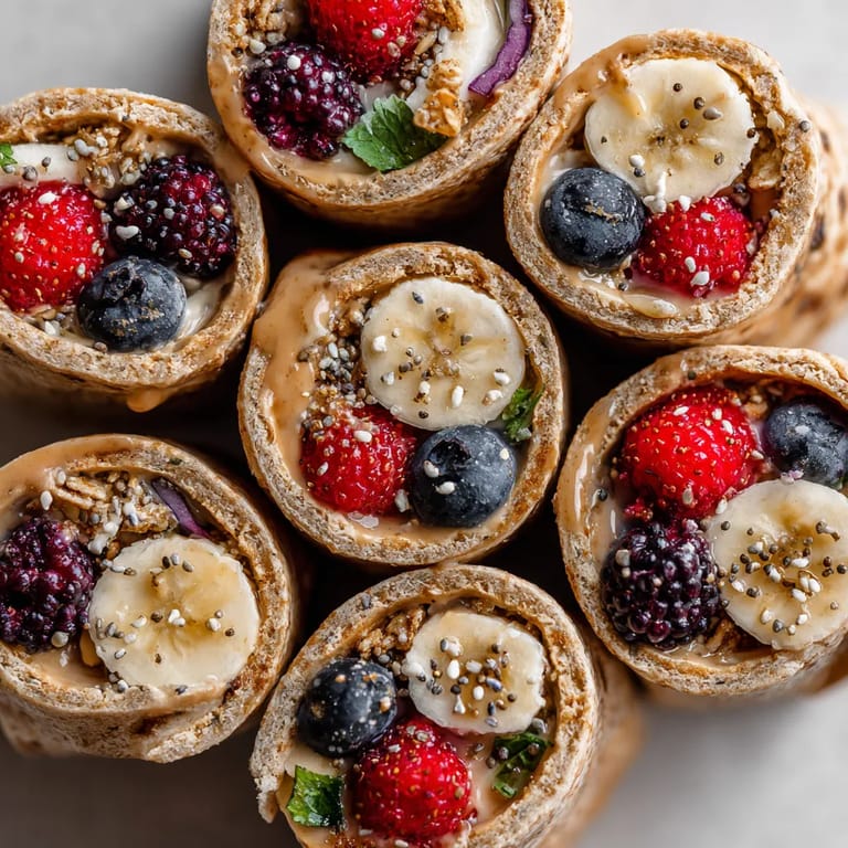 Save It Peanut butter and berry protein granola wrap roll-ups bring the unbeatable combo of creamy peanut butter, crunchy granola, sweet bananas, and juicy berries together in a perfectly portable snack. It is my top pick for lunch boxes, busy afternoons, and all those days when you crave a nostalgic PBJ but want something new and nourishing. If you want a treat that everyone grabs from the tray and disappears in minutes, this is it.