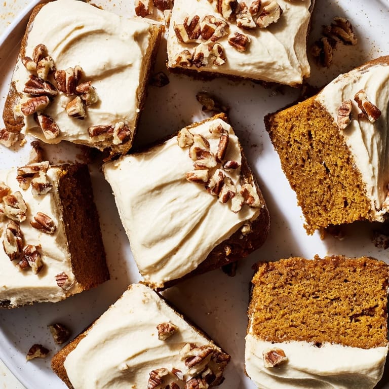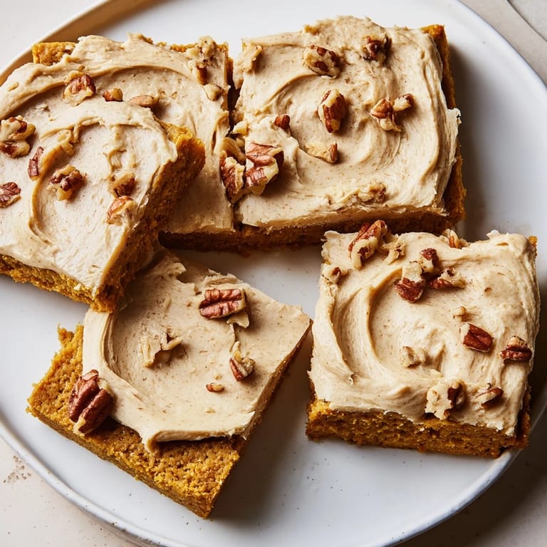I have always enjoyed making these pumpkin bars during the fall season as they never fail to impress guests with their rich flavor and perfect balance of spices.