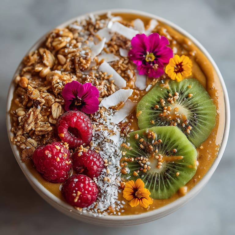 Pour blended smoothie base into freezer-safe containers and freeze for up to a month. Thaw in the refrigerator overnight or blend again with a splash of milk for a slushier bowl. Portion toppings separately and add them after thawing for best texture.