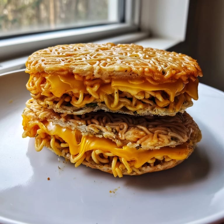 Save It The first time I made a ramen grilled cheese, it was pure accident—I'd overcooked a pot of noodles while distracted and couldn't bear to waste them. Instead of starting over, I thought, why not crisp them into something bread-like? The sizzle when those golden patties hit the hot buttered pan was honestly magical. Now it's become my favorite thing to throw together when I want something that feels indulgent but takes barely longer than making toast. There's something wonderfully silly about serving ramen as a sandwich bun, yet it somehow works better than it has any right to.