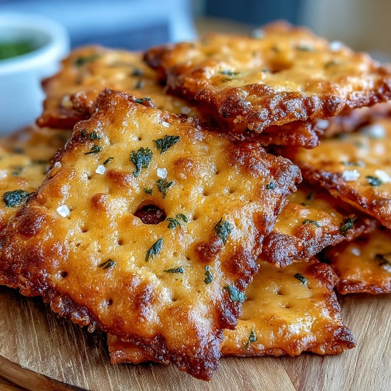 Achte darauf, dass die Butter wirklich kalt ist, bevor du sie in den Food Processor gibst – das sorgt für eine knusprigere, blättrigere Textur. Wenn der Teig nach dem Pulsieren noch zu trocken erscheint, füge teelöffelweise kaltes Wasser hinzu, bis er sich gerade so zusammenhält. Rolle den Teig so gleichmäßig wie möglich aus, damit alle Cracker gleichzeitig fertig gebacken werden. Das Einstechen eines kleinen Lochs in die Mitte jedes Crackers mit einem Spieß verhindert, dass sie beim Backen aufgehen. Lass die Cracker vollständig auf einem Gitterrost abkühlen – erst dann erreichen sie ihre optimale Knusprigkeit.