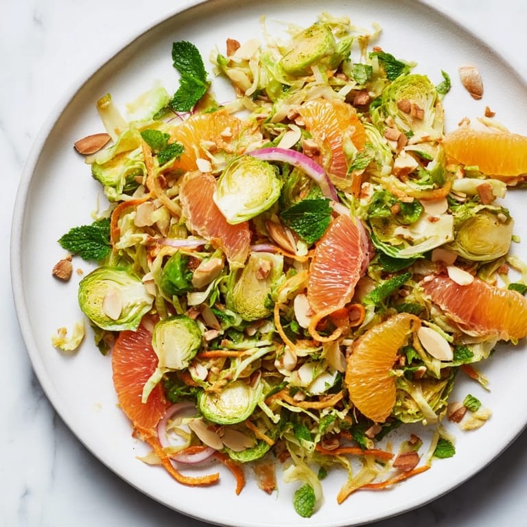 Save It A vibrant, refreshing slaw featuring thinly sliced Brussels sprouts tossed with juicy citrus, fresh herbs, and a light, sparkling citrus vinaigrette. Perfect as a side dish or light lunch.