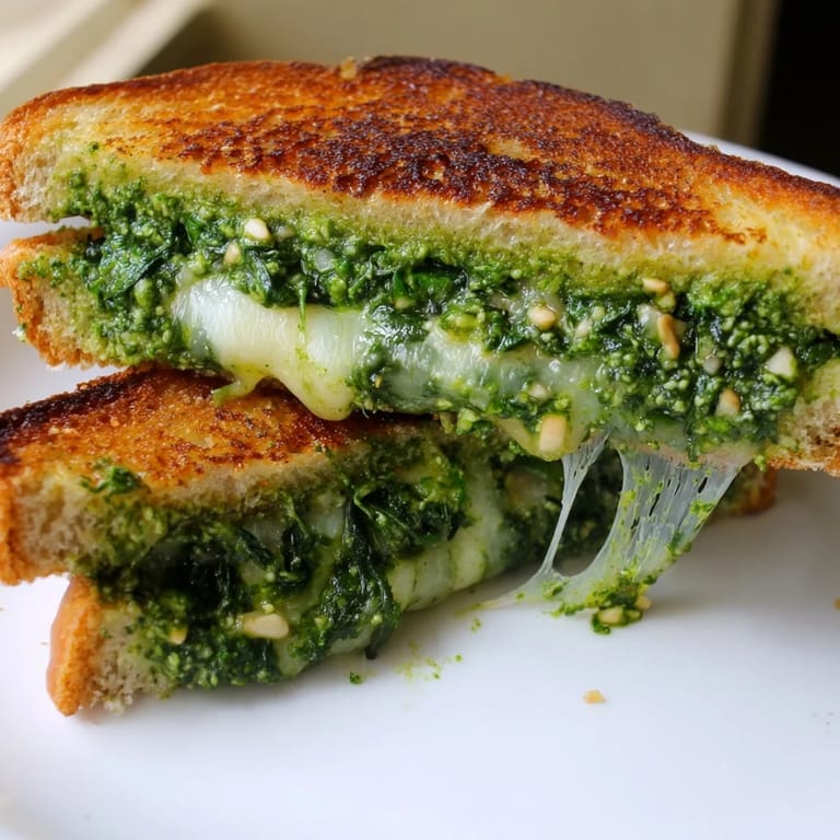 Save It There's something about the smell of butter hitting a hot skillet that makes you forget every other sandwich you've ever made. I discovered this spinach pesto grilled cheese on an ordinary Tuesday when I had a bunch of basil wilting in my crisper drawer and absolutely refused to let it go to waste. One quick blitz in the food processor, a handful of spinach thrown in as reinforcement, and suddenly I wasn't making a guilt-free sandwich—I was making something genuinely exciting that happened to be green.