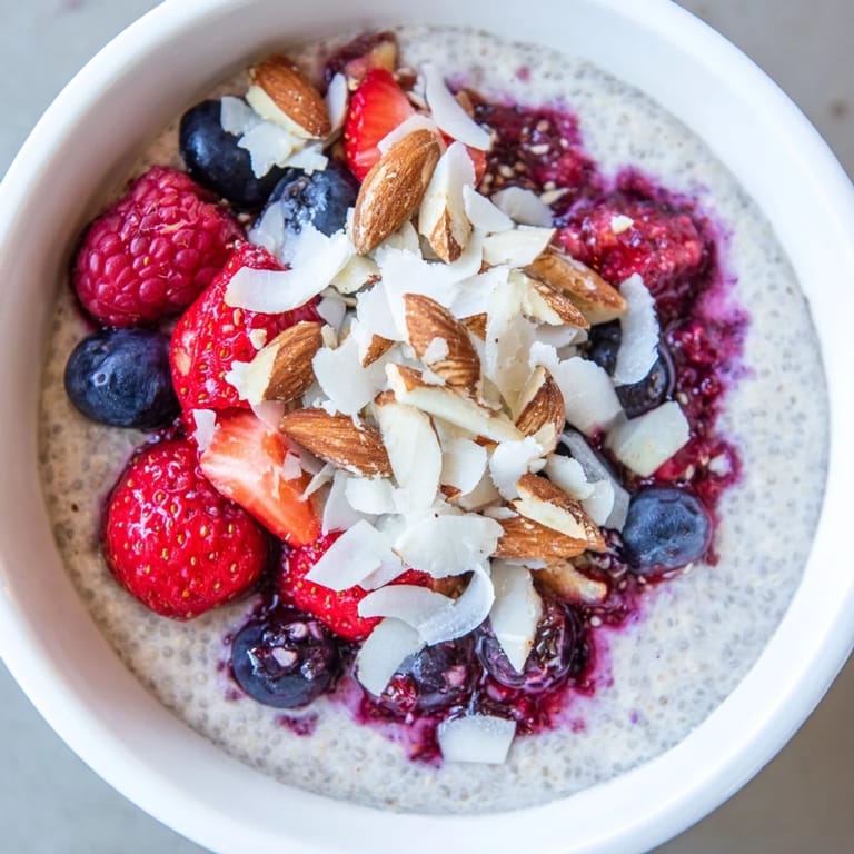 - Fresh berries and toppings: Coconut flakes and almonds add texture, but honestly, the pudding shines even without them.