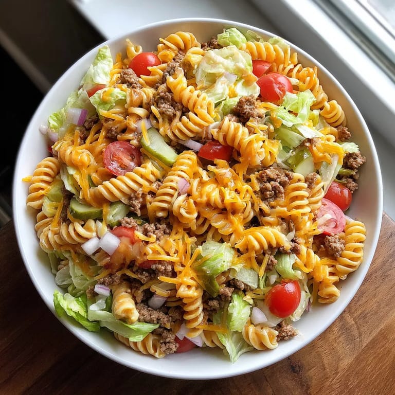 Save It Big Mac pasta salad takes all the best flavors of the iconic burger and transforms them into a fun and satisfying pasta salad you can share at any gathering. It has become my go-to dish for potlucks and family nights when everyone wants something hearty but a little unexpected. The combination of tangy pickles, creamy sauce, fresh lettuce, and savory ground beef is pure comfort in a bowl.