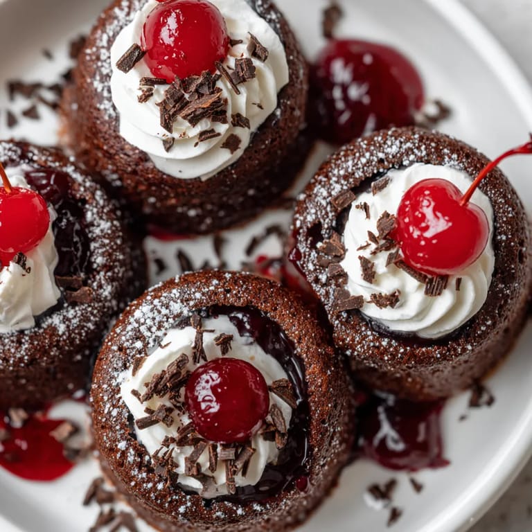Save It Black Forest Lava Cakes bring together two favorite desserts in a spectacular way The velvety molten chocolate center reveals a lush cherry compote inspired by Schwarzwälder Kirschtorte all crowned with whipped cream and an extra cherry Every bite is rich indulgent and downright impressive yet you can whip up these cakes with simple ingredients in about half an hour
