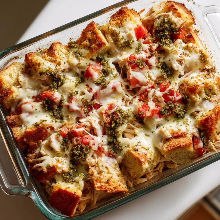 Save It This hearty Chicken Bruschetta Casserole transforms beloved bruschetta flavors into a comforting family meal with an unexpected twist of everything bagels as the base. The combination creates a delightful fusion of Italian and American cuisine that brings casual elegance to your dinner table while keeping the cooking process beginner-friendly.