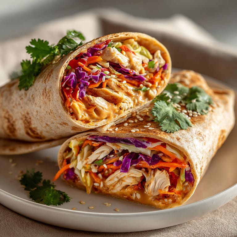 Save It These chicken and cabbage peanut wraps make a perfect lunch or quick dinner when you want something fresh and hearty without touching the stove. Crunchy vegetables and creamy peanut sauce blend with tender chicken inside a soft wrap. My kitchen comes alive with color when I make these and they disappear just as fast as I can roll them up.