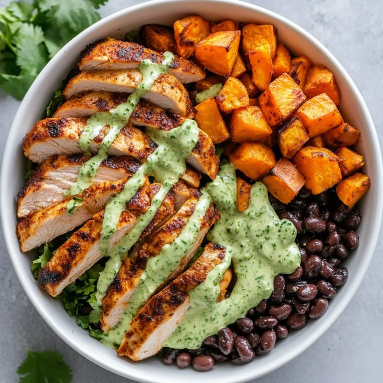 - Layer a generous helping of black beans sweet potatoes and sliced chicken into a bowl. Drizzle with cilantro lime sauce and scatter with extra cilantro and lime wedges for a colorful boost