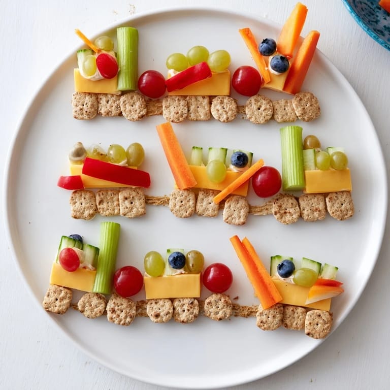 This snack platter is not only visually captivating but also encourages interaction. Each train car showcases different tastes and textures that make nibbling exciting. Parents and kids alike will enjoy assembling or rearranging the train as a shared activity, perfect for small gatherings or everyday treats.