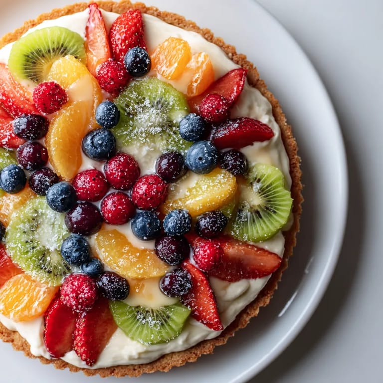 You can bake the cookie base and mix the glaze in advance; add the fruit toppings just before serving for freshness.
