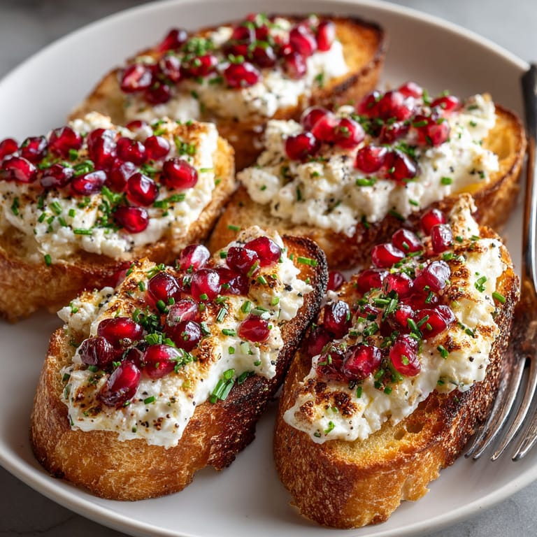 Pile these crostini onto a rustic platter with extra pomegranate scattered around Serve alongside olives and marinated veggies for a full Mediterranean spread They also pair beautifully with a sparkling wine or light cocktail for a festive touch