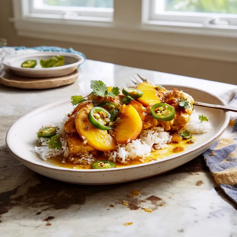 Dont worry if you dont have every ingredient on hand. Apricot or even mango preserves work beautifully in place of peach preserves. Boneless chicken breasts can substitute for thighs, though you'll need to adjust cooking time to prevent drying. For a spice adjustment, poblano peppers offer a milder heat than jalapeños, while serrano peppers amp up the spice level. Honey can replace preserves with a slight reduction in liquid ingredients for proper consistency.