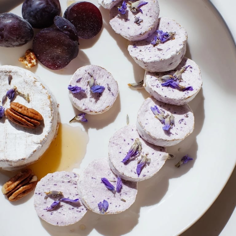 - Ash-rinded brie: Its soft grey exterior echoes the lavender's elegance while offering a buttery contrast that grounds the floral notes.