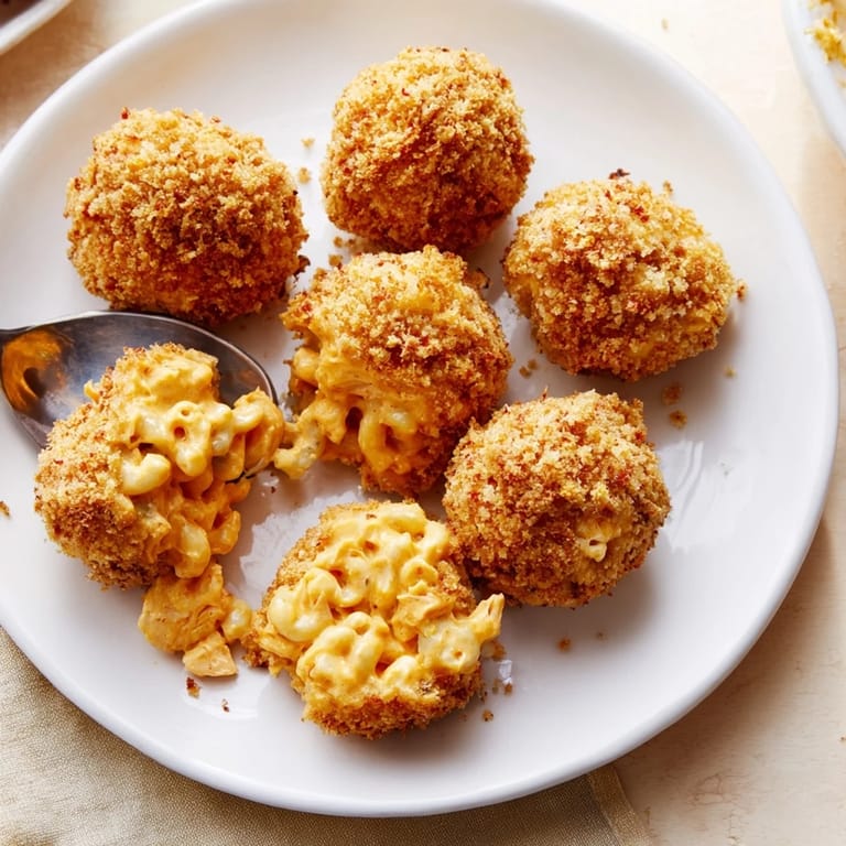 Save It A bold appetizer featuring creamy mac and cheese combined with spicy buffalo chicken, shaped into crisp golden bites: perfect for parties or game day.