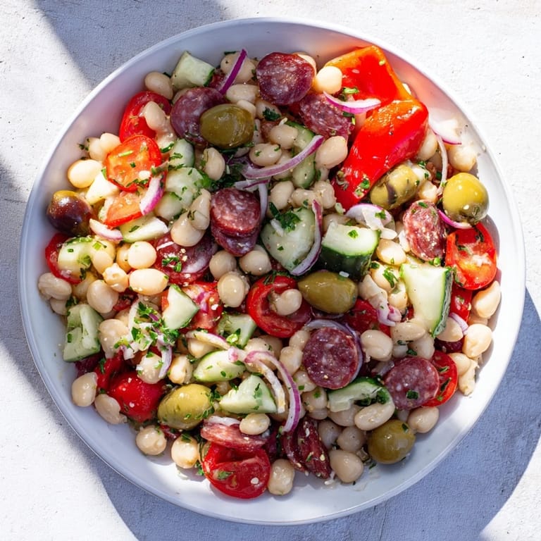 I'll never forget serving this at a potluck where everyone brought their usual casseroles and pasta dishes. Someone took a forkful, paused, and asked what was in it like they'd tasted something unexpected—in the best way. The combination of salty salami with briny olives and creamy beans created a complexity that didn't feel fussy, just honest and satisfying. That's when I knew this salad had staying power.