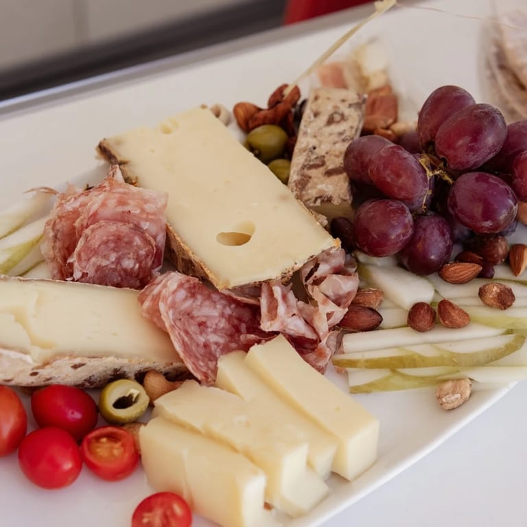 - Cured Meats: 80 g Saucisson sec sliced, 80 g Jambon cru (dry-cured ham) thinly sliced