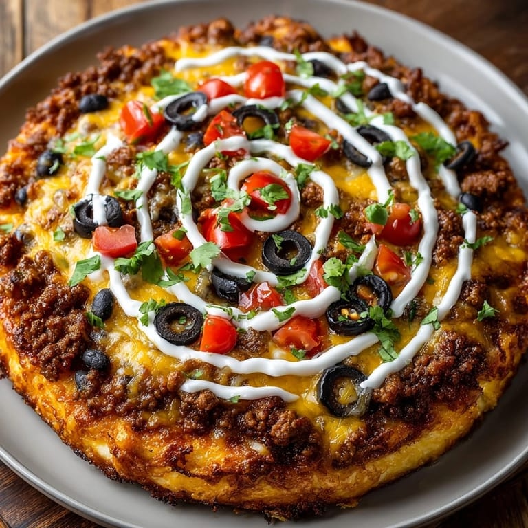 Swap ground beef for turkey or plant-based crumbles. Try pepper Jack cheese for extra bite. You can use gluten free or cauliflower-based pizza crust for allergies. If you do not have cherry tomatoes chopped regular tomatoes work too.