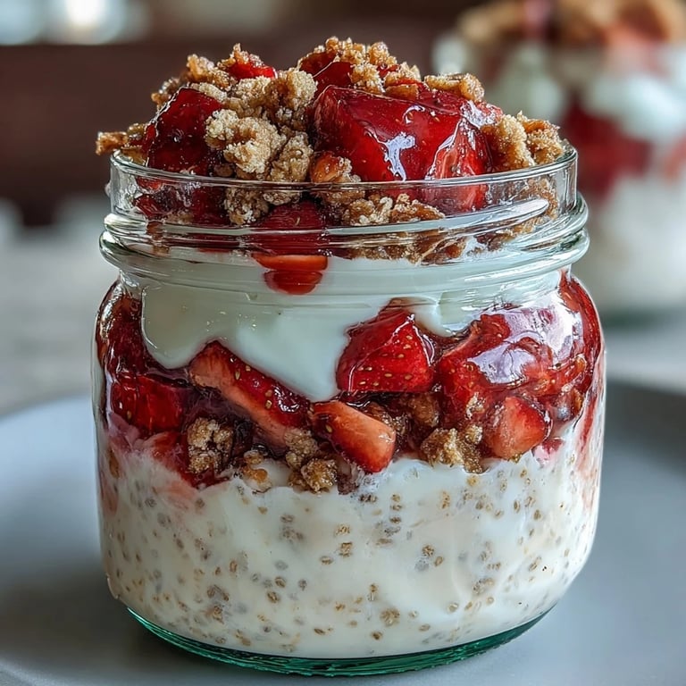 Save It Last summer, I was rushing out the door on a Tuesday morning when my neighbor mentioned she'd started making overnight oats in mason jars. The way she described them—creamy, no cooking required, grab-and-go—made me think of all those mornings I'd skipped breakfast entirely. That same week, I had fresh strawberries sitting in my fridge and cream cheese leftover from a cheesecake I'd baked, and suddenly the idea clicked: what if I layered them together? This strawberry cheesecake version became my answer to those chaotic mornings when I wanted something that tasted indulgent but actually required nothing more than five minutes of assembly the night before.