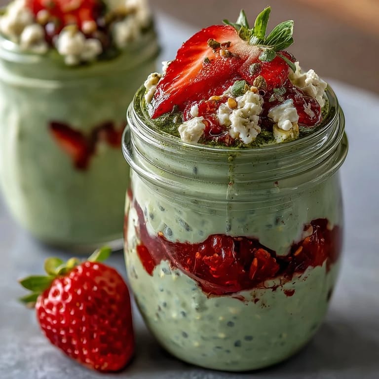 I brought these to a beach picnic one weekend, and watching my sister's face when she bit into that perfect balance of sweet strawberries, creamy oats, and subtle matcha earthiness was honestly worth the whole preparation. She kept asking why store-bought overnight oats never taste like this, and I realized it's because nobody bothers to actually layer them with intention. Now when people ask what I'm carrying in those pretty jars, I know I'm about to make them jealous.