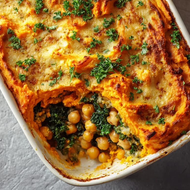 Save It There is nothing more comforting on a chilly day than digging into a bubbly shepherds pie loaded with sweet potato and kale. This vegetarian version brings you big color and full flavor without any fuss. Hearty chickpeas stand in for meat and every forkful feels wholesome and rich.