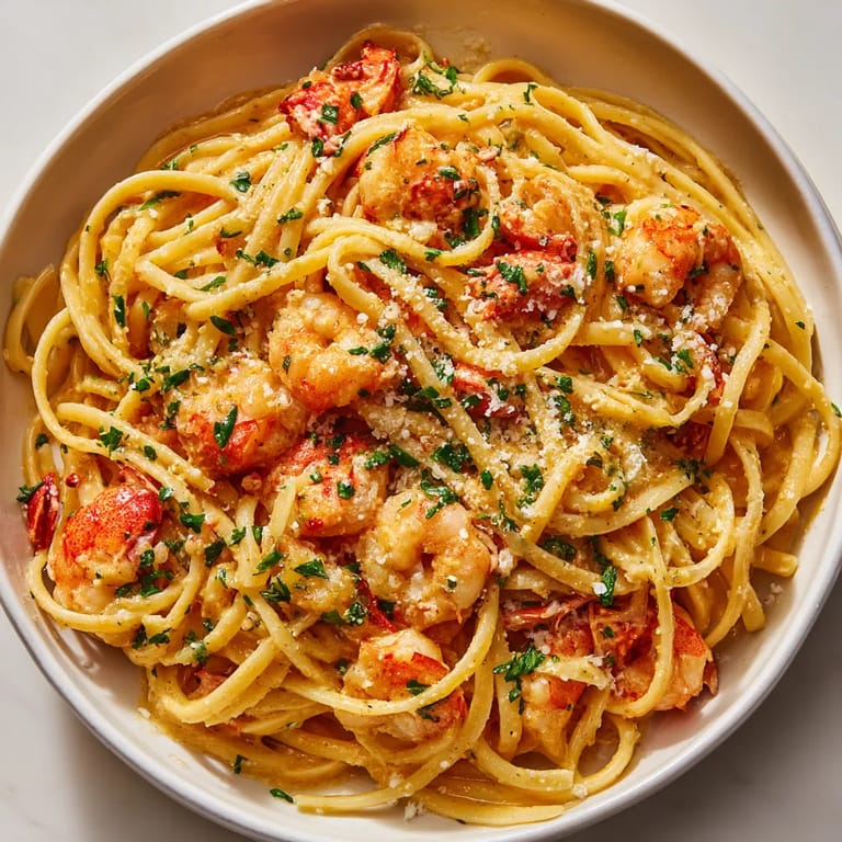 If you cannot find langostino tails, swap in cooked shrimp peeled and deveined or use lump crabmeat for a luxurious twist. For a lighter version, skip the cream and use only the bisque. Gluten-free pasta cooks up just as well for anyone avoiding wheat.