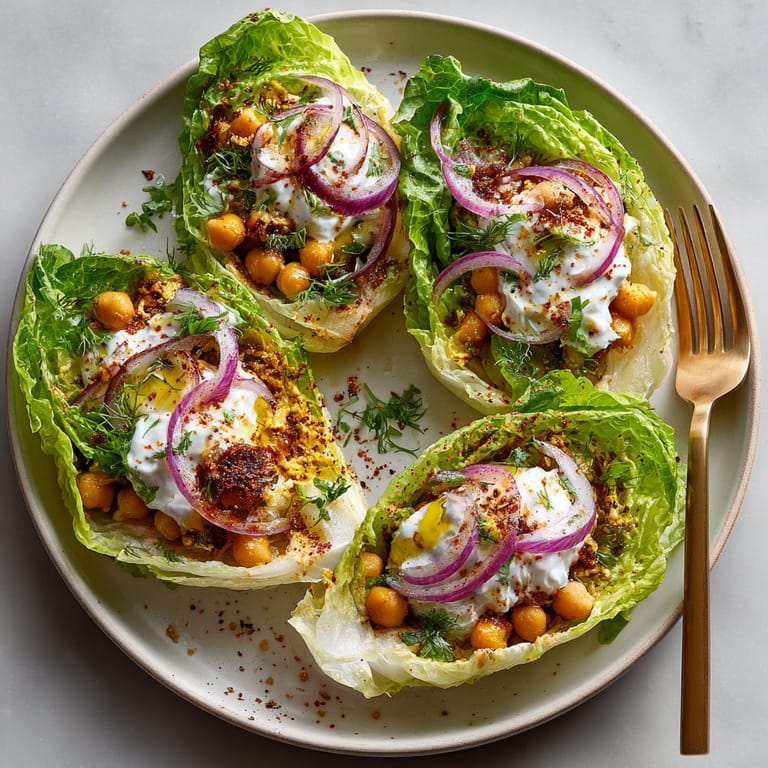 - Lay a lettuce leaf open on a plate Spoon a generous amount of seasoned chickpea mixture into the center Top with sliced onions and a dollop of Greek yogurt